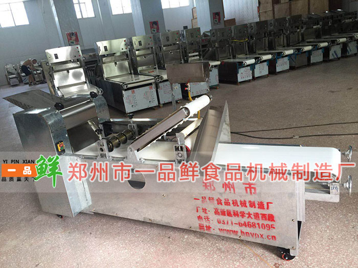 設(shè)備功能:單輥單刀,適應(yīng)大中型飯店、燴面館、食堂、賓館的自用,可生產(chǎn)橢圓形燴面坯,燴面坯重量可自行調(diào)節(jié),輸送帶周長3.6米傳送一次成型,定量生產(chǎn)。